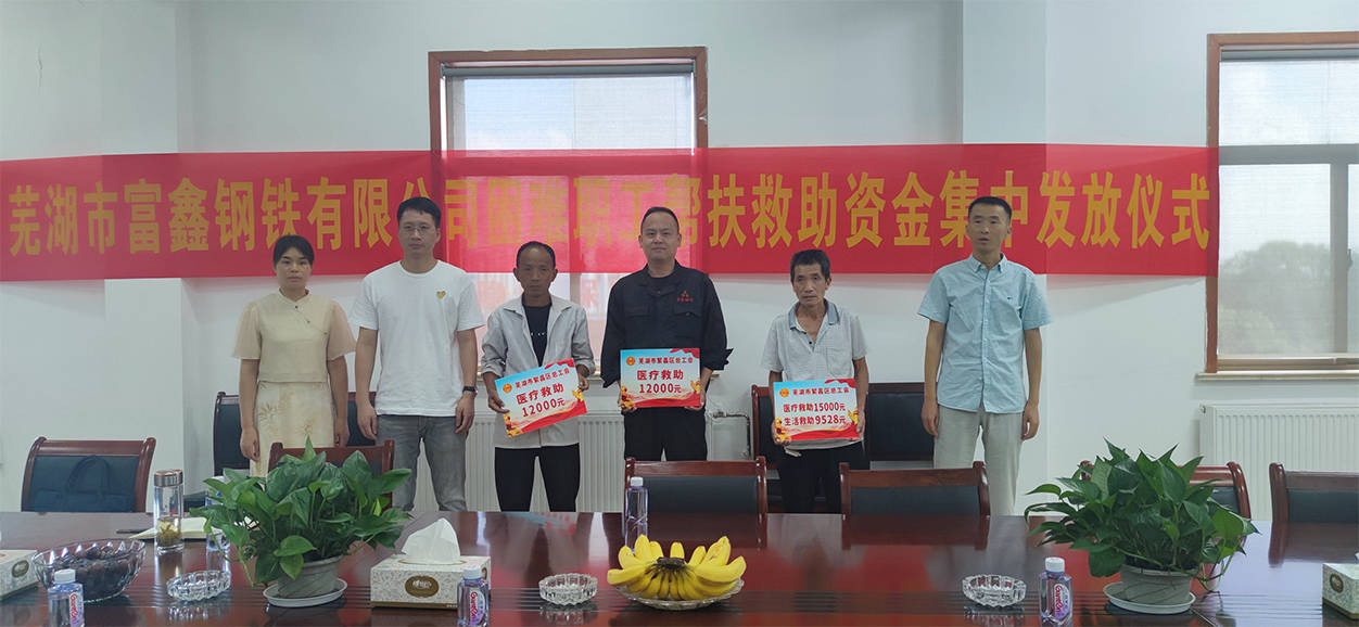 1月11日,蕪湖市富鑫鋼鐵有限公司工會(huì)舉行2022年春節(jié)困難職工幫扶慰問(wèn)金發(fā)放儀式,繁昌區(qū)總工會(huì)黨組成員徐飛、新港鎮(zhèn)...